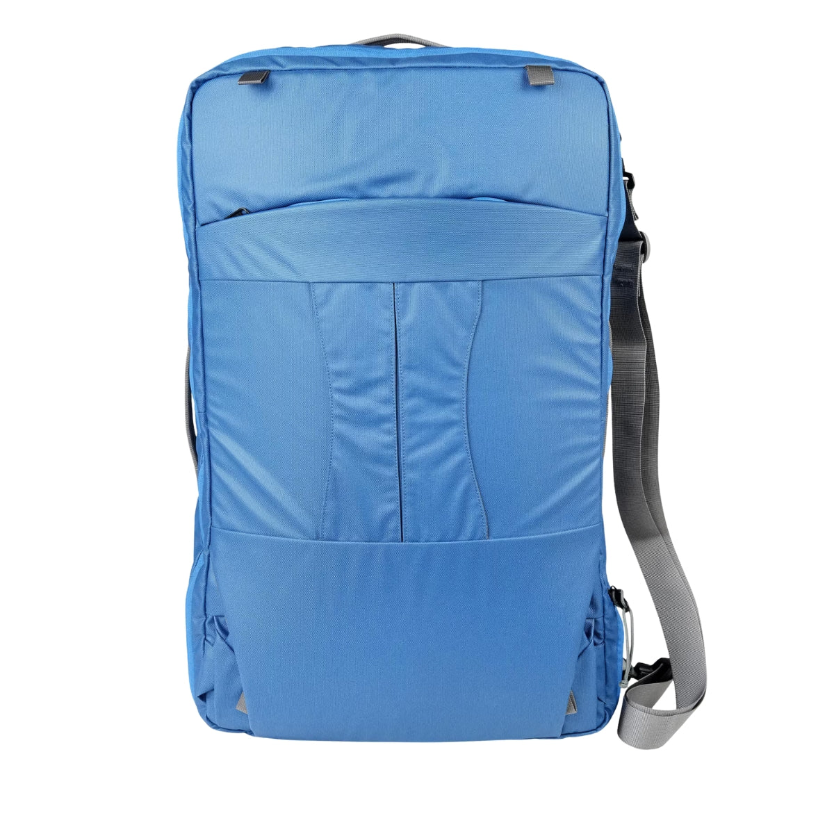 Versatile 3‑way carry: stowable backpack straps, removable shoulder strap, or grab bag handles—plus a pass‑through sleeve for rolling luggage.