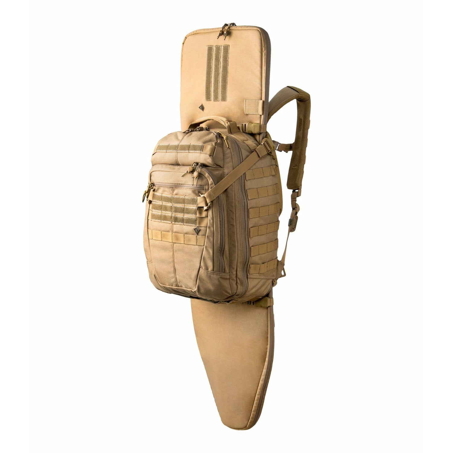 Dual density shoulder straps, double layered bottom, internal hook/loop mounting platform, and a fully functional hook/loop web platform compatible with MOLLE/PALS set this tactical backpack apart from others in strength, reliability, and comfort for the wearer. With ample space for essential gear, and featuring First Tactical’s new Hook & Hang Thru™ System, the Specialist 1-Day is the ideal backpack for short, overnight missions.