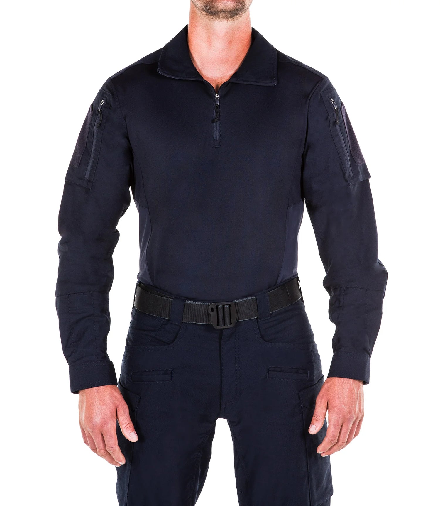 First Tactical's Defender Series Shirts are the best of both worlds: performance built to handle any mission while maintaining the professional look needed when on normal patrol. This quarter zip shirt has specialized pockets boasting ample space for oversized gear, a split yoke eliminates unwanted bulk, and oversized sleeve pockets accept patches or embroidery. Creating the perfect warm weather shirt was at the forefront of design as articulated elbows, running gussets, and vented mesh locations provide advanced movement and breathability.